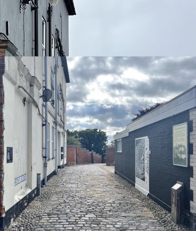 Once Lowestoft had relocated to the cliff c. 1300-1350, the face was terraced from end to end before the building-plots were set out, and the scores were gradually walled, stepped and surfaced. But the ones used by vehicles - “Gunton” (The Ravine), “Gallows” (Cart), “Rant” (still the same) and “Henfield” (bottom of old Nelson Street) didn’t require steps! Martin’s Score is not an original one, only becoming adopted as such during the late 18th or early 19 century. The so-called “Armada Post” (on the opposite side of the score to the one seen here) has a small brass plate with TM 1688 on it, but it’s unlikely to have anything to do with the 1588 Spanish invasion attempt as centenaries are of late 19th century origins mainly. The TM has been liked with a late 16th century mariner named Thomas Mildram (who reputedly contributed a fire-ship to the English fleet), but he lived towards the bottom of what is now Old Nelson Street. A much more likely association is a late 17th-early 18th century merchant, Thomas Mighells, who lived in an earlier house on the site of 55 High Street. He had